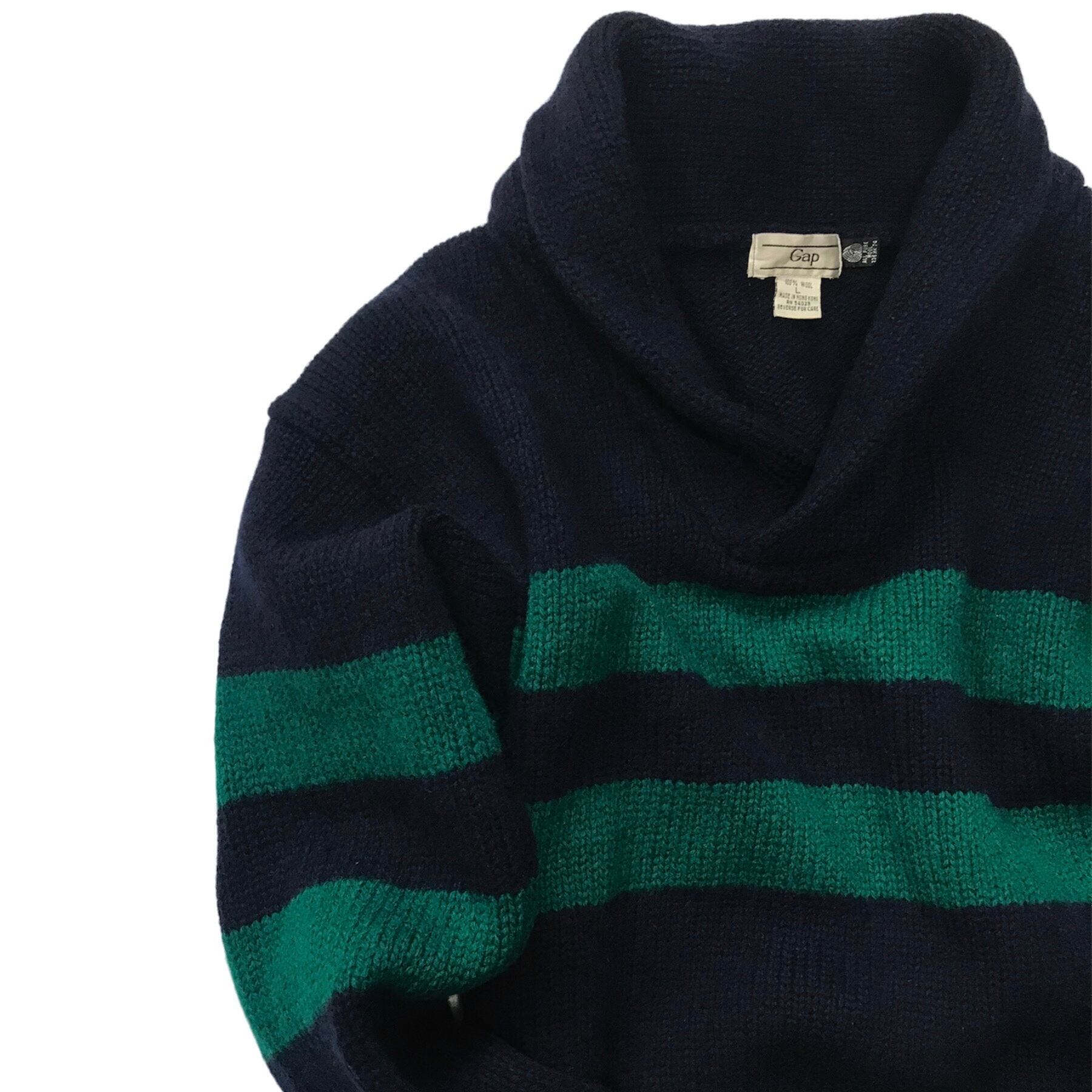 80年代白タグのGAPになります。肉厚のウールの素材感たまりません。絶妙なショールカラーとボーダーもたまりません。シルエットもこれまた最高です。oldGAP好きの方是非。
