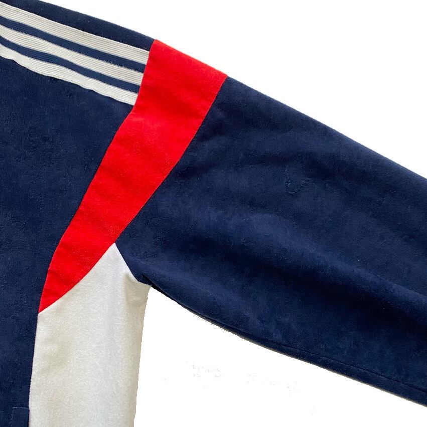 アディダスのジャージです。70-80年代のVentex社製です。カラーリング最高です。いわゆるジャージよりは身幅がゆったりしているので着やすいと思います。