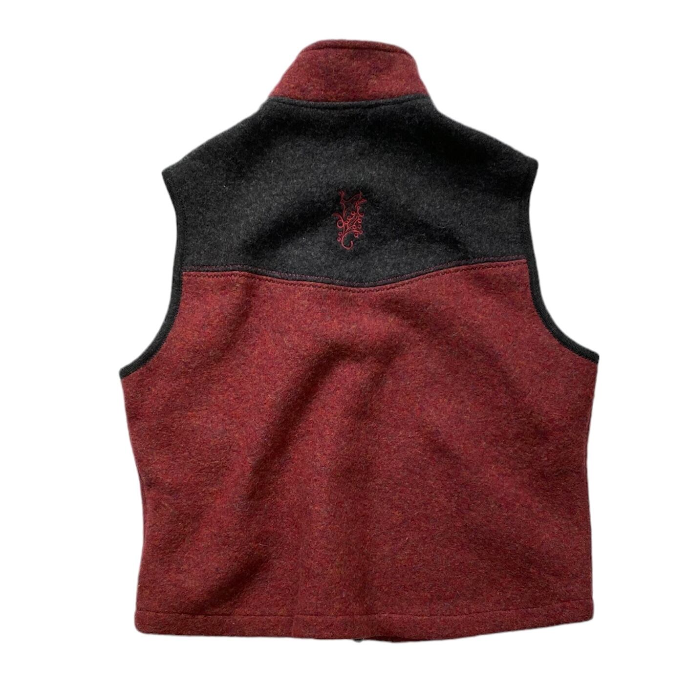 90年代LLビーンのベストです。ナイロンのベストはよく見かけますが、ウール100%はあまり見かけないのでは。背中の刺繍はよく見るとトナカイっぽいですが、よく分かりません、、スウェットの上からでも、ナイロンパーカーのインナーにでも大活躍すると思うので是非。