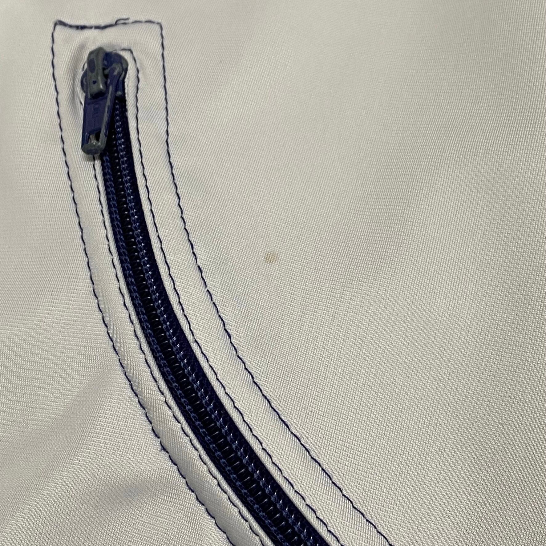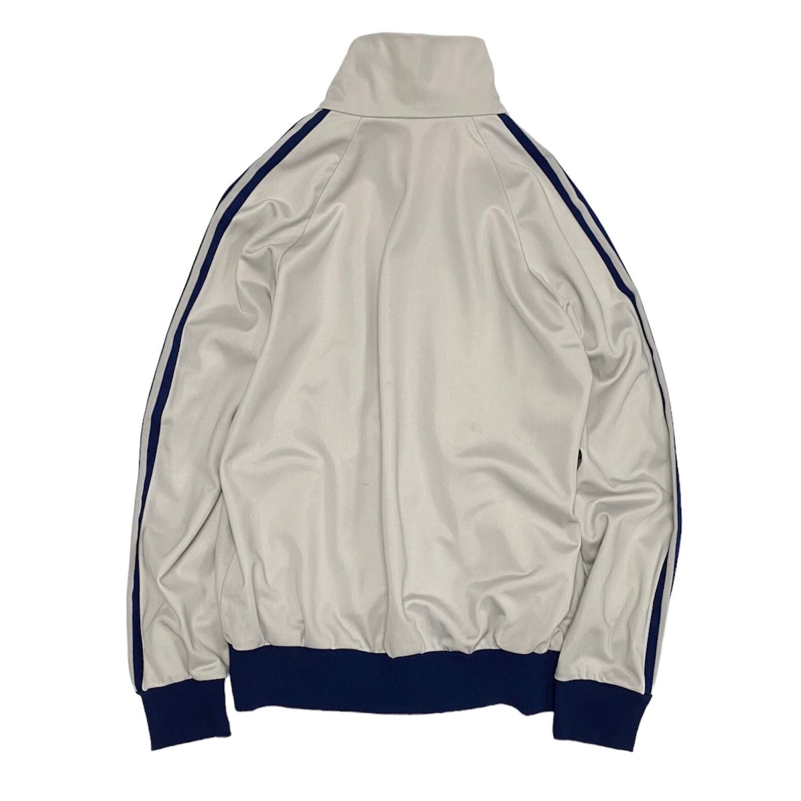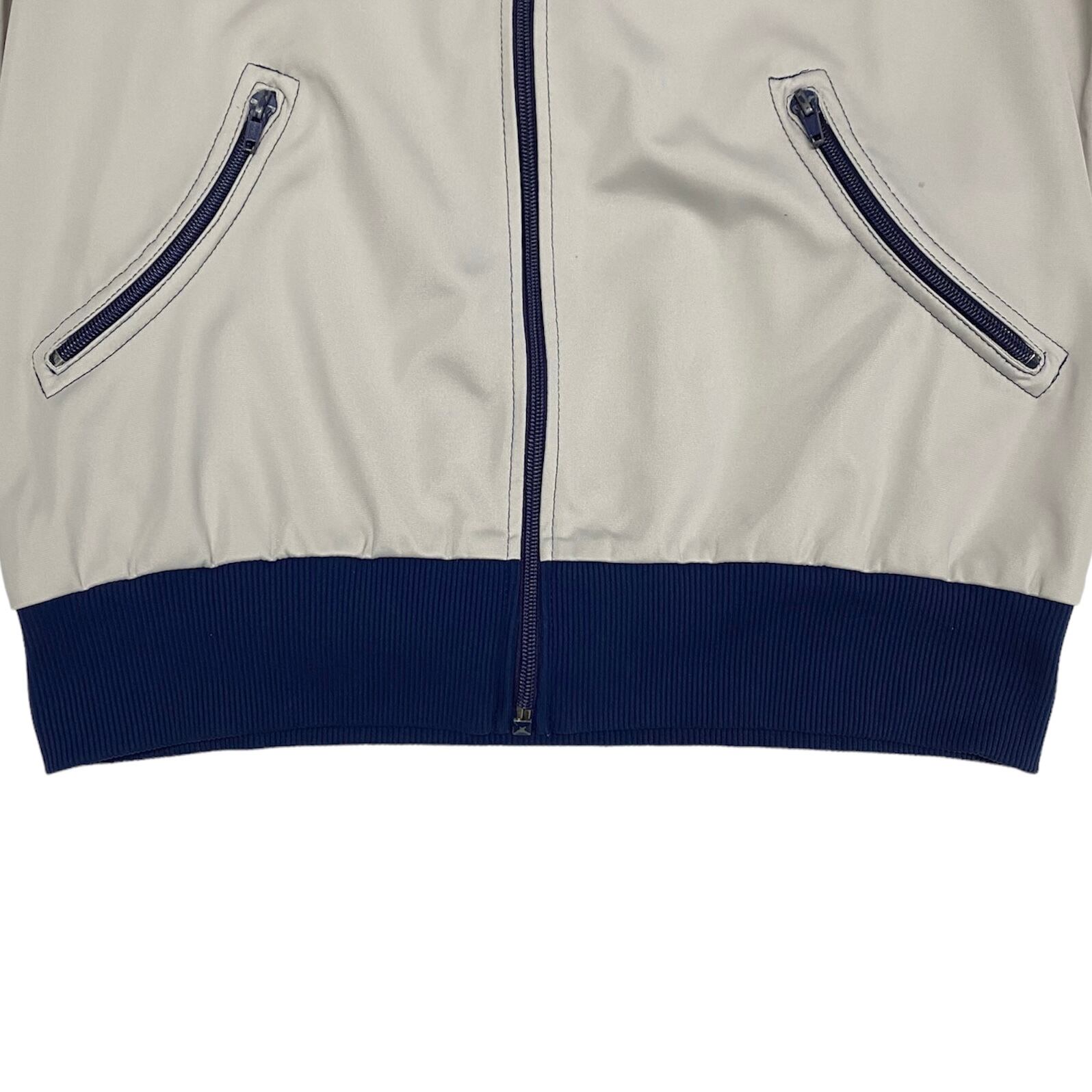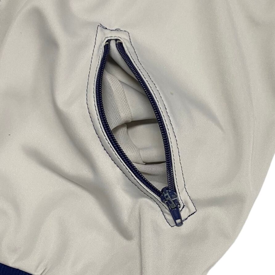 ハンガリー製の希少な曲がりポケットのジャージです。何とも言えないベージュとネイビーのカラーが最高です。ツルッとした生地感が好きな方是非。