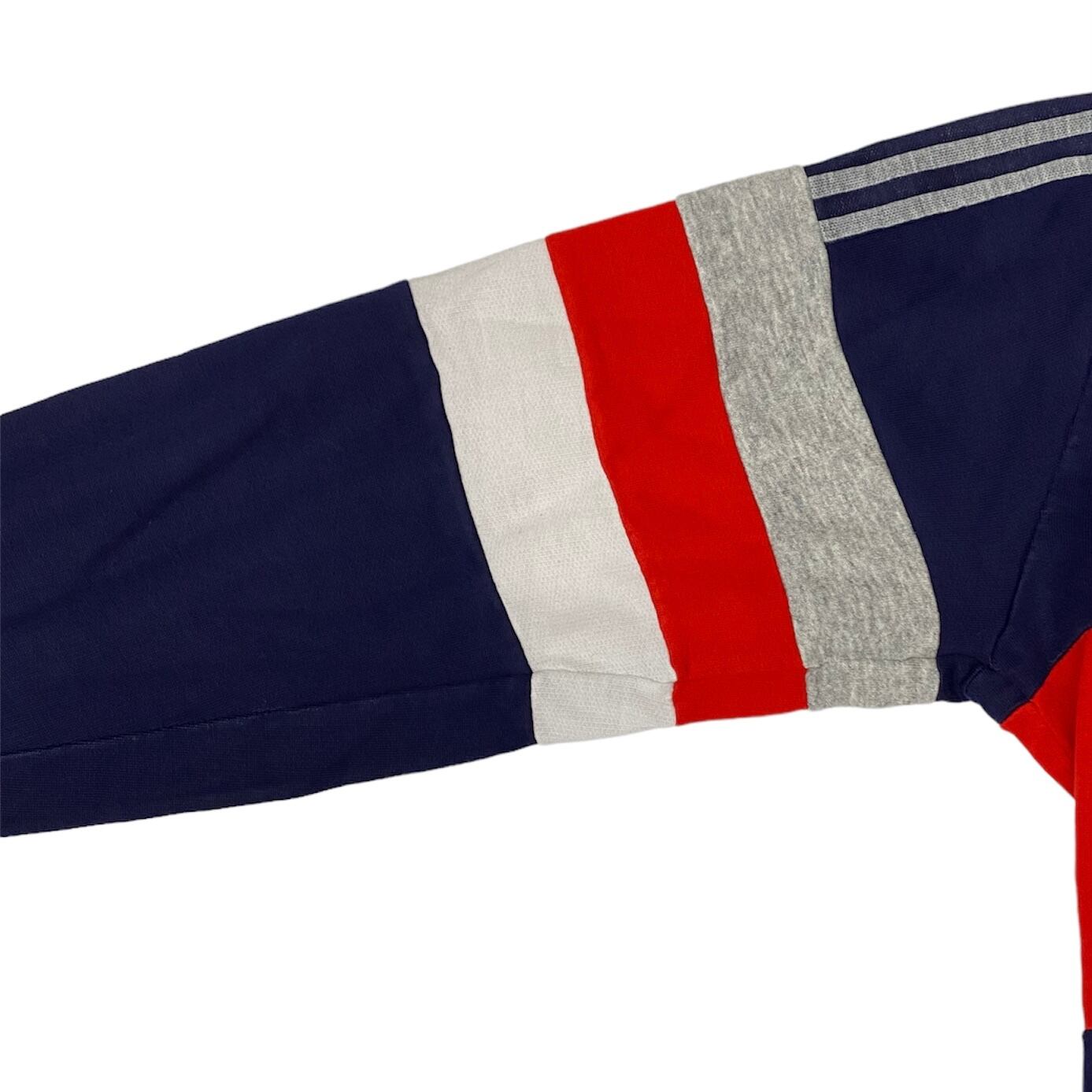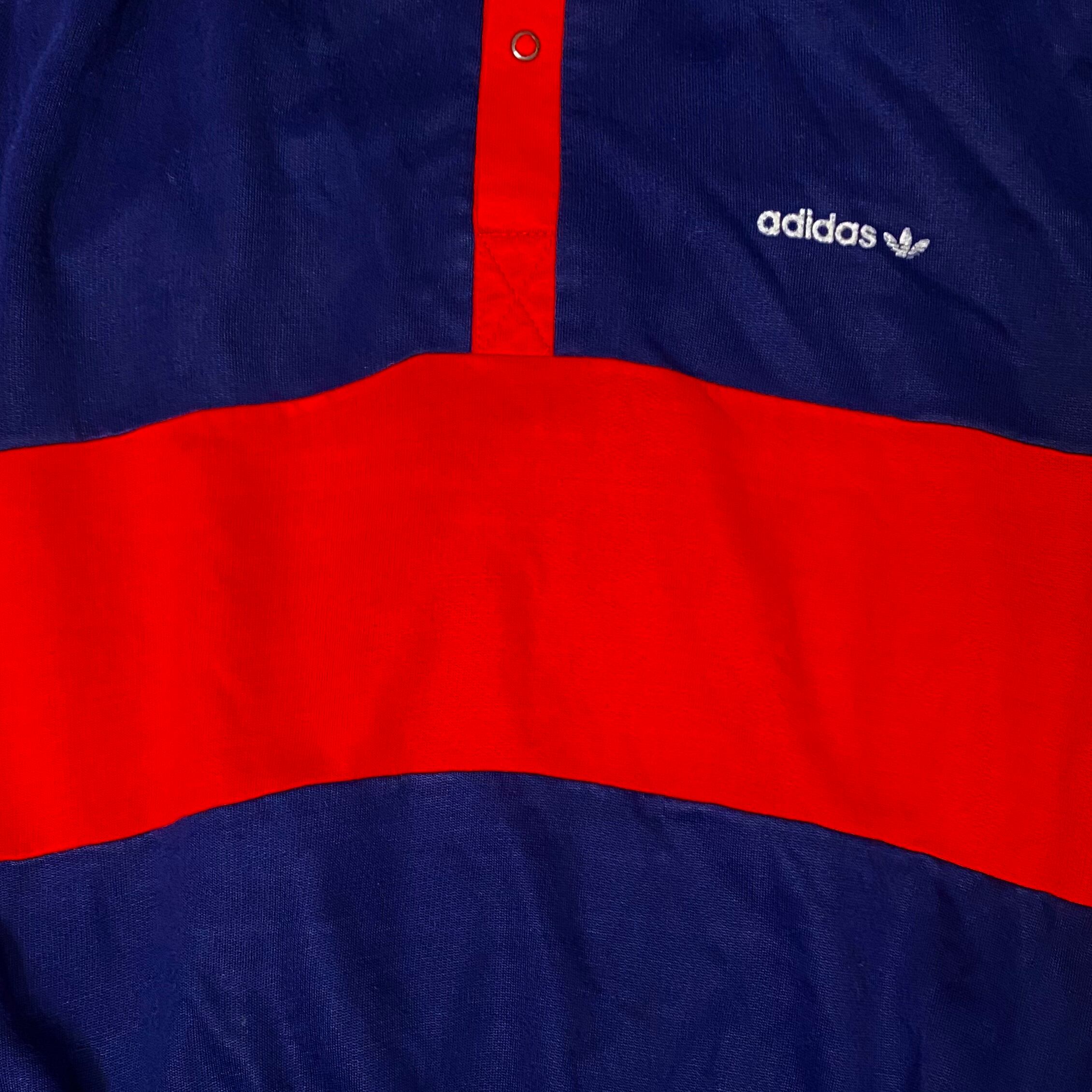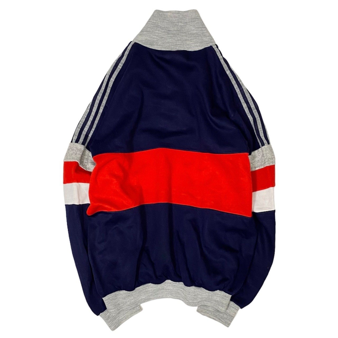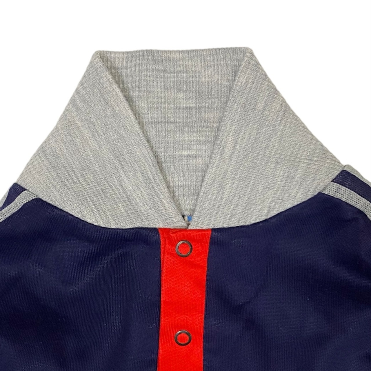 80年代フランス製のスナップボタンのスウェットです。サイズも大きめです。トリコロールカラーが良いですね。ポケット付いてるのも良し。