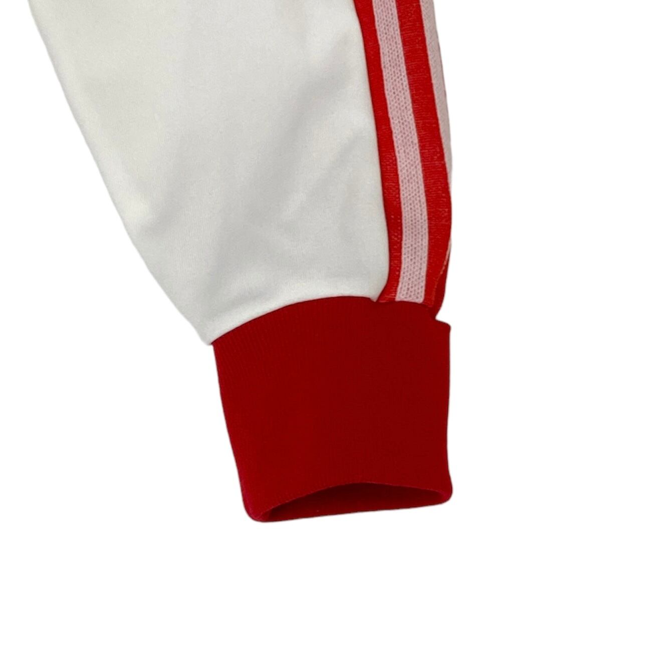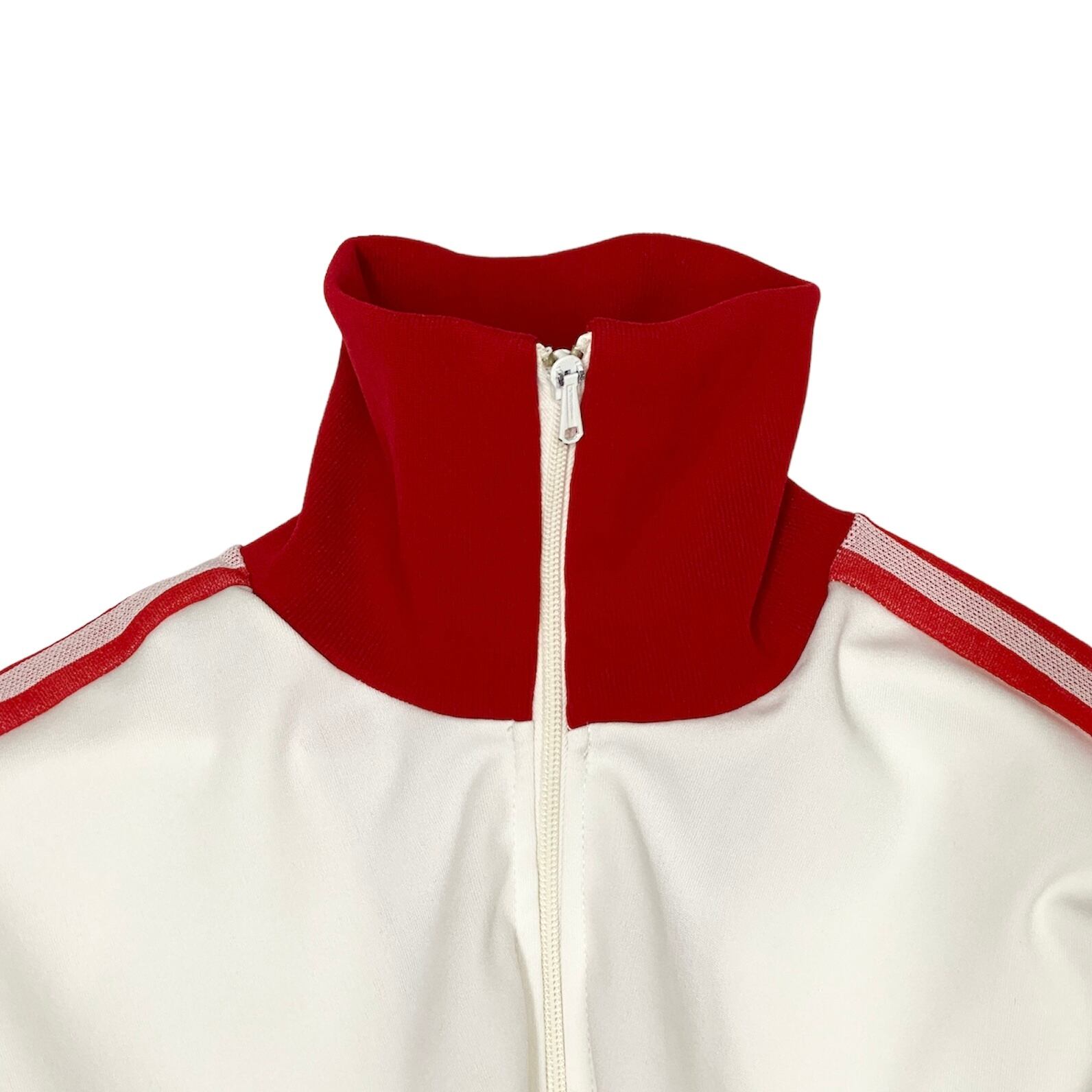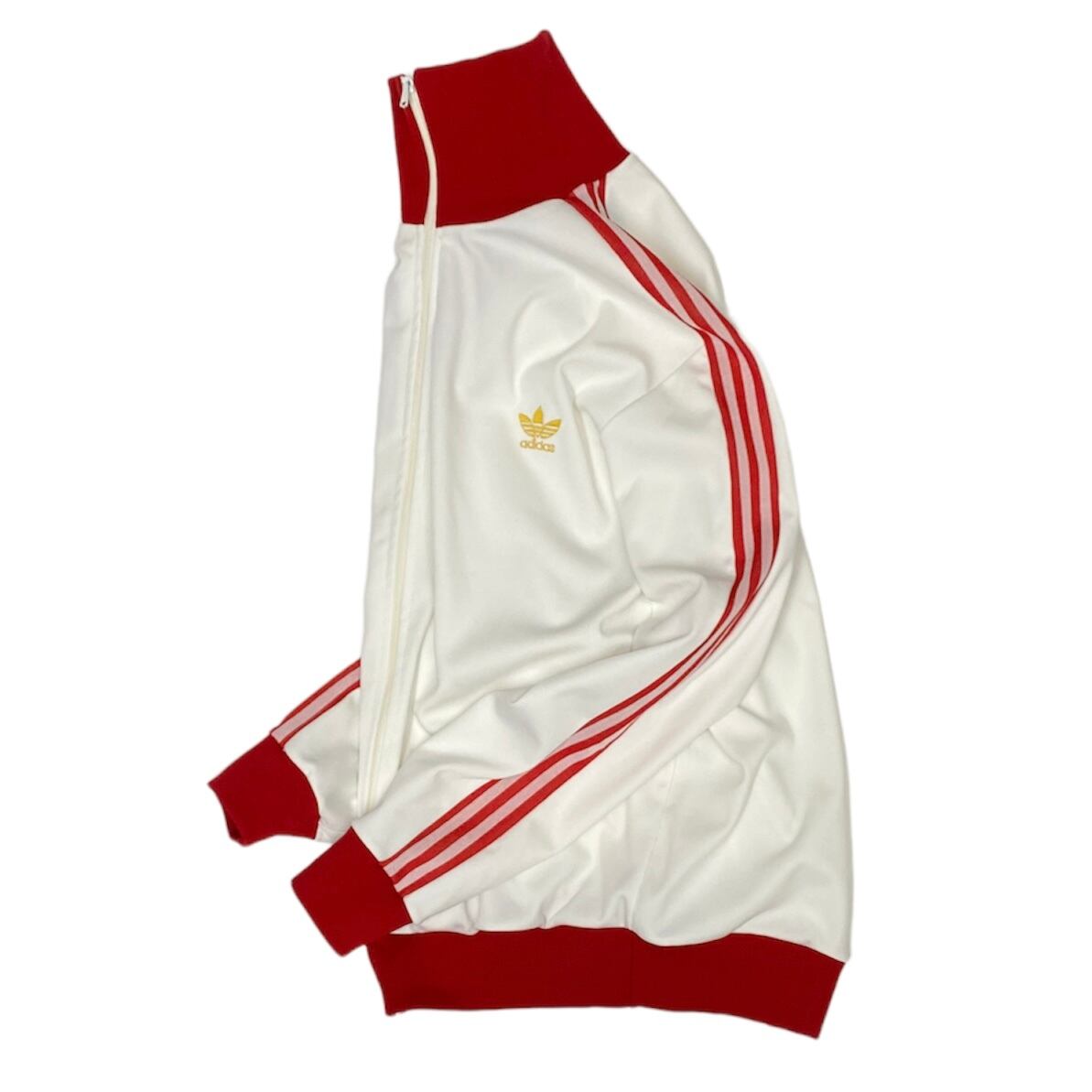 フランス製のアディダスジャージです。白、赤が良い感じです。白ですが、状態最高です。オススメです。
