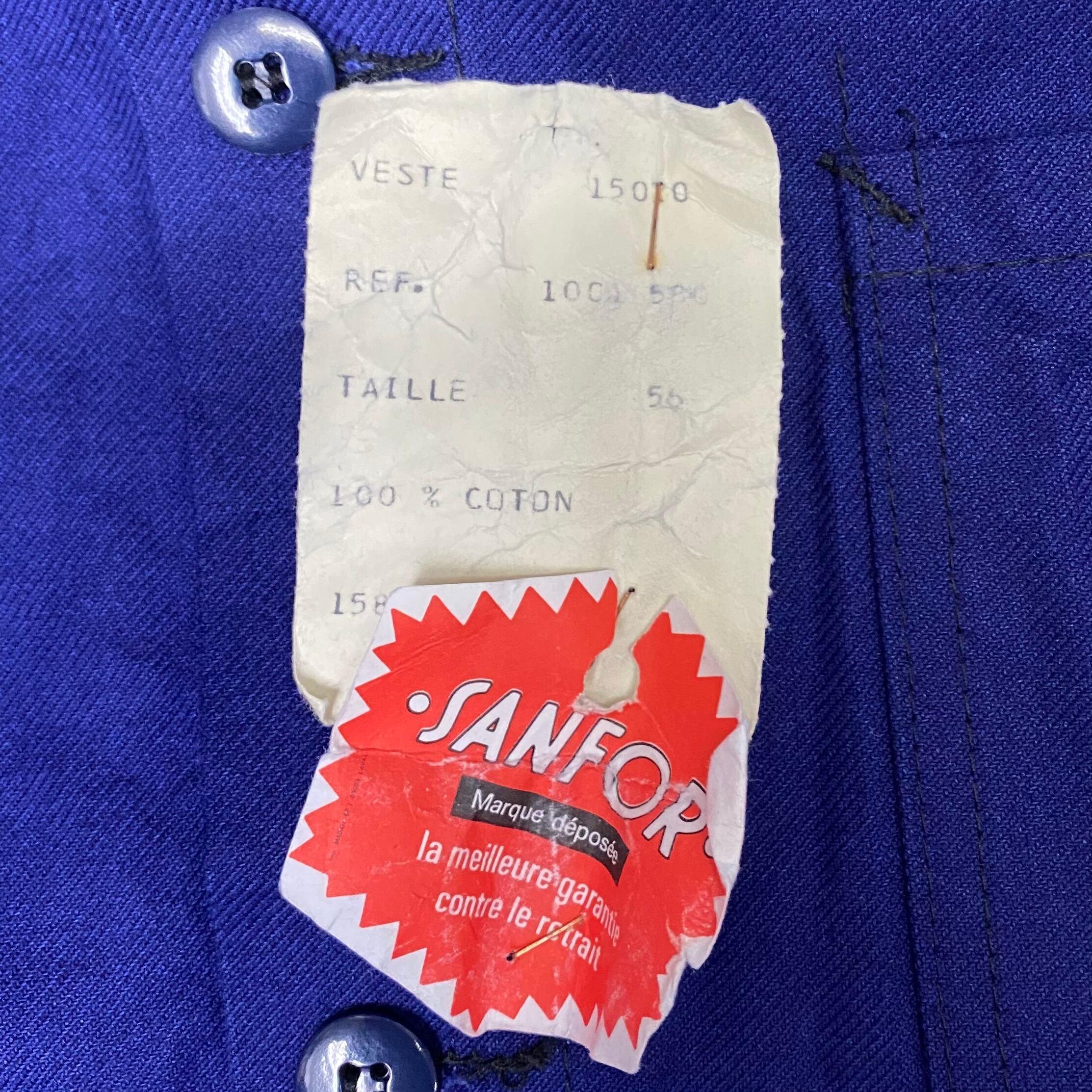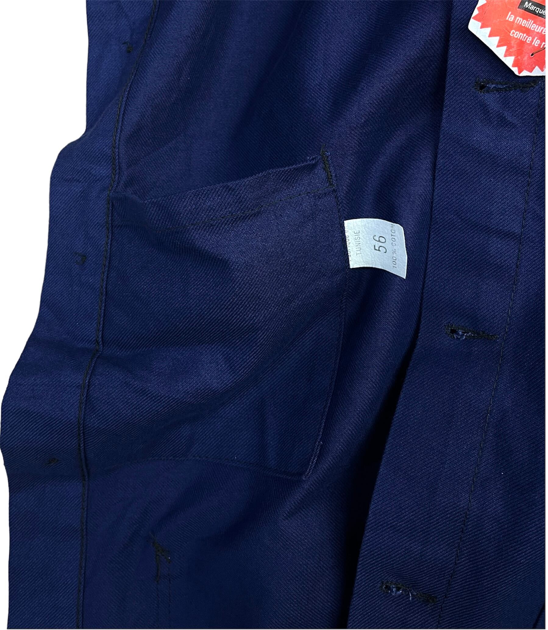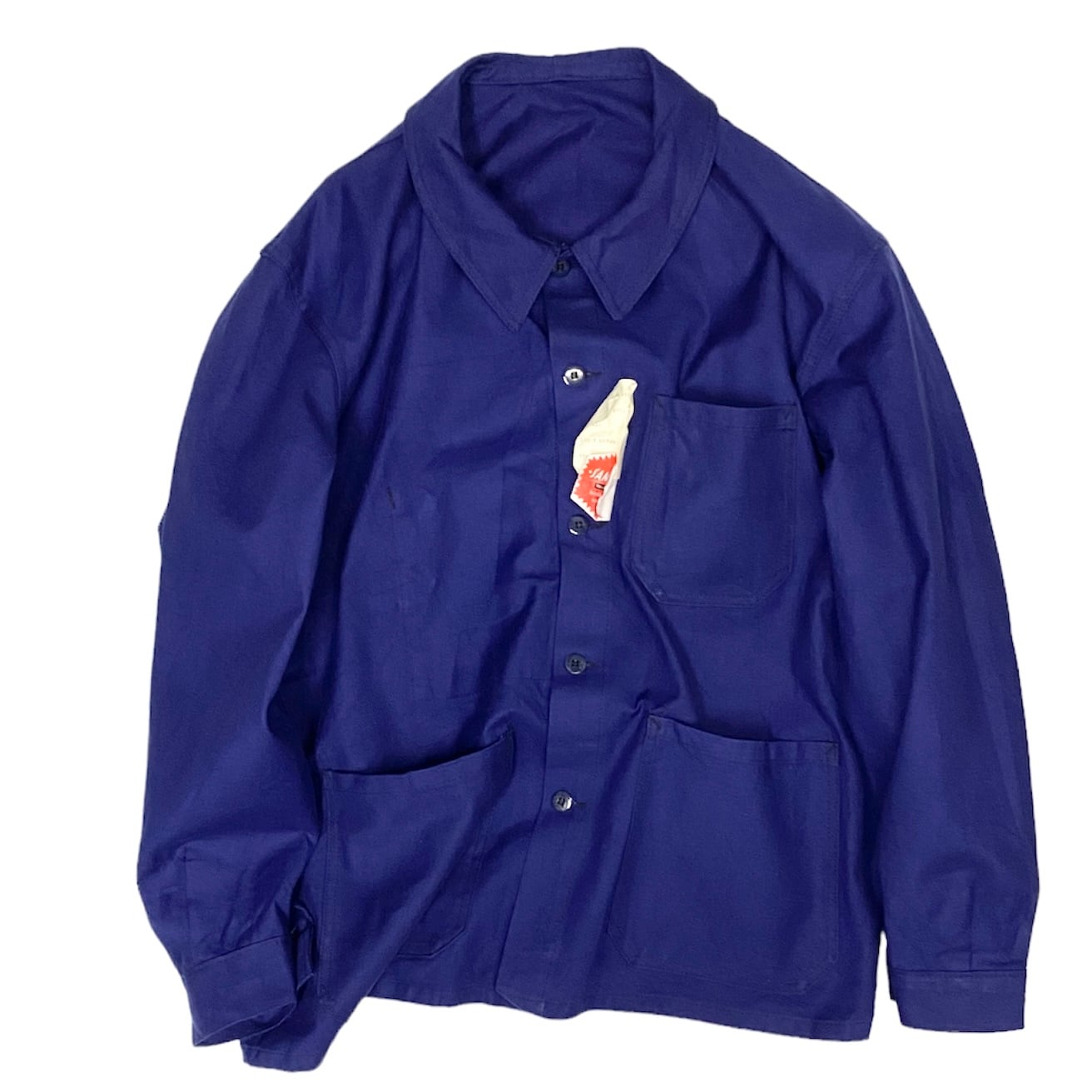 French work jacketです。おそらく60年代の物ではないかと思います。デッドストックです。サイズも56なのでデカいです。ゆるめに羽織りたい方オススメです。おそらくチュニジア製。