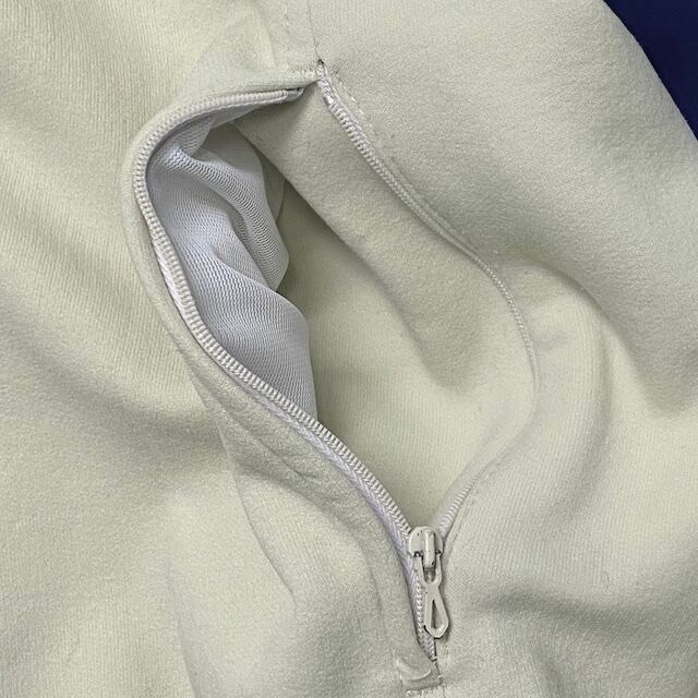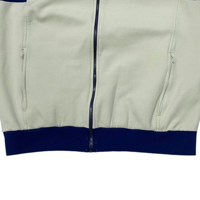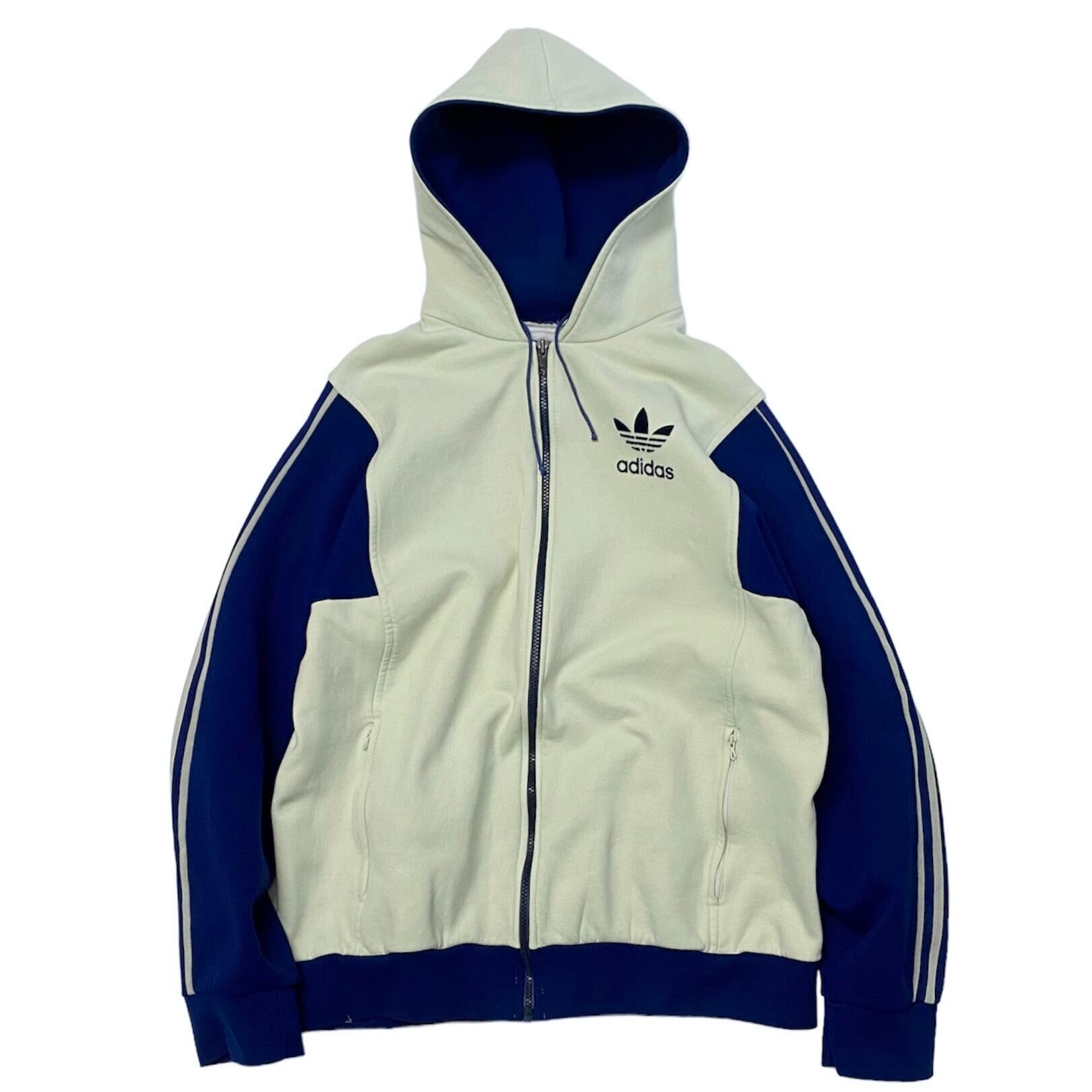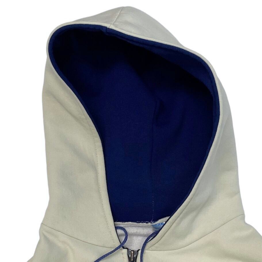 珍しいタイプのジャージパーカ入荷です。もちろんフランス製です。フードの裏側もネイビーになっています。生地もボンディングのようなハリ感あります。サイズ大きめです。オススメです。