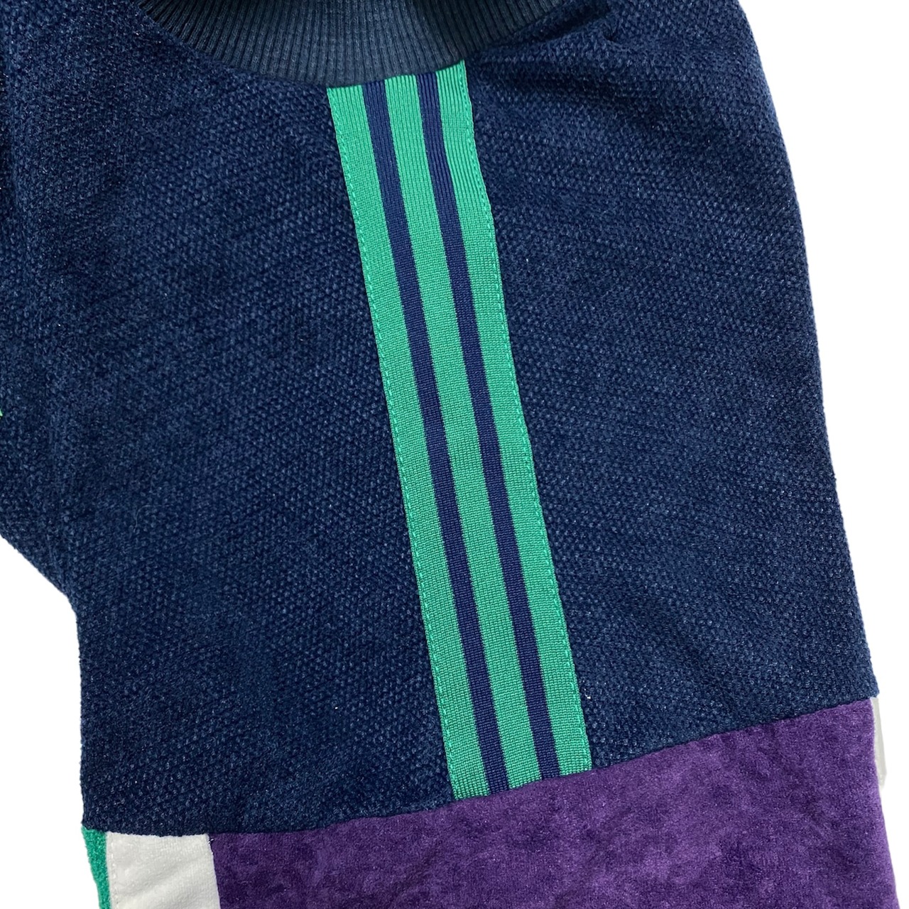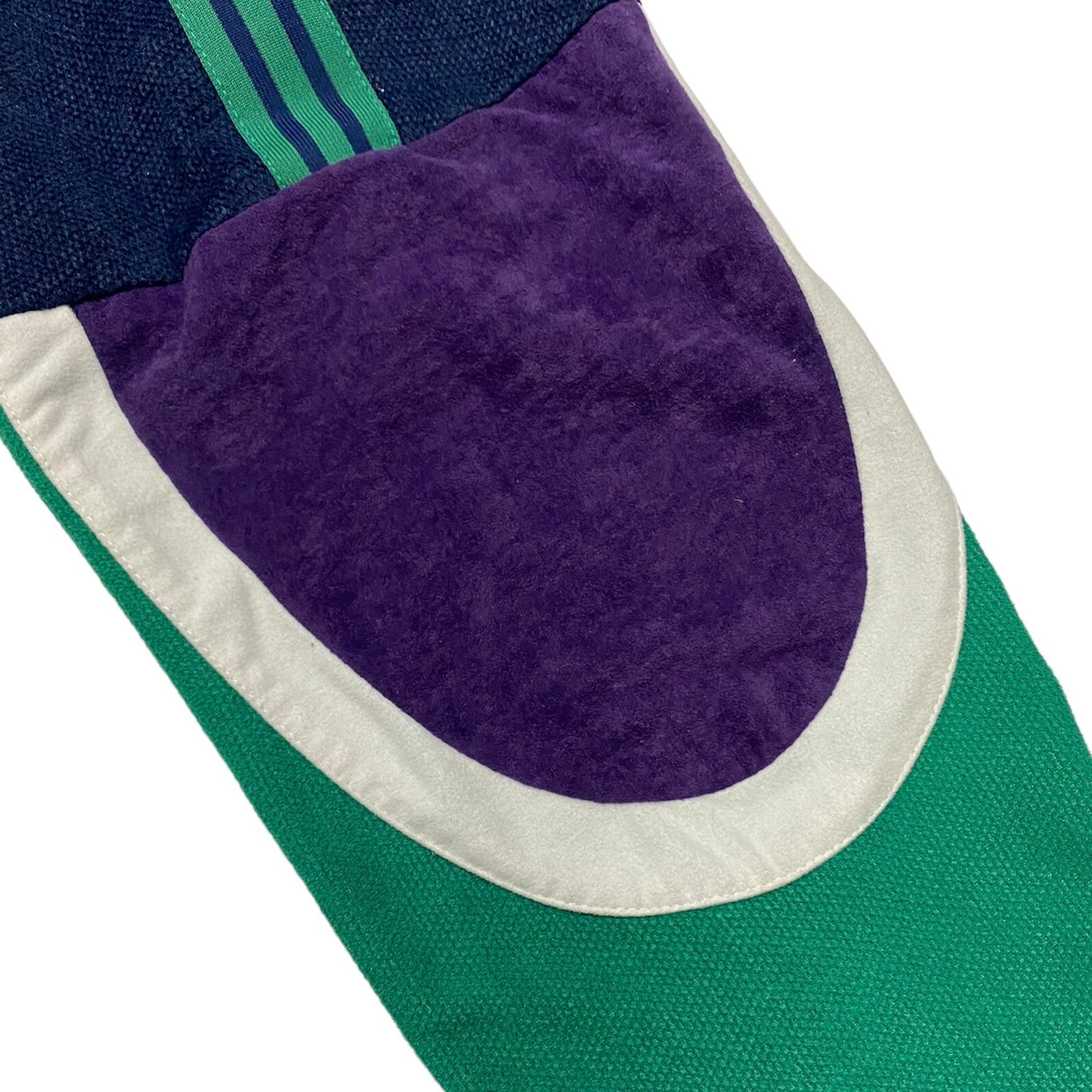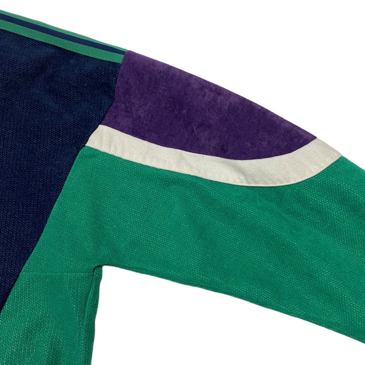 フランス製アディダスです。肩部分がベロア調になっています。カラーリング最高です。グリーン、ネイビー、パープルという組み合わせが80年代を思わせる今はないカラーリングです。身幅もゆったりめなので着やすいと思います。