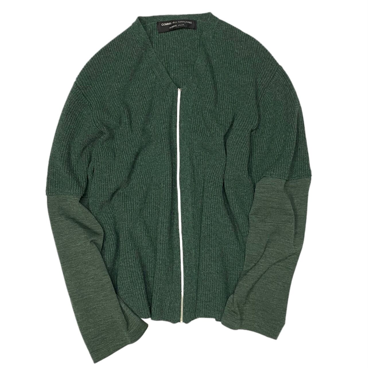 92年のギャルソンオムプリュスのジップカーディガンです。袖部分が切り替えになっています。ギャルソンらしいアイテムですね。とても上品で良いグリーンです。ギャルソンアーカイブが高騰していますので、オススメです。