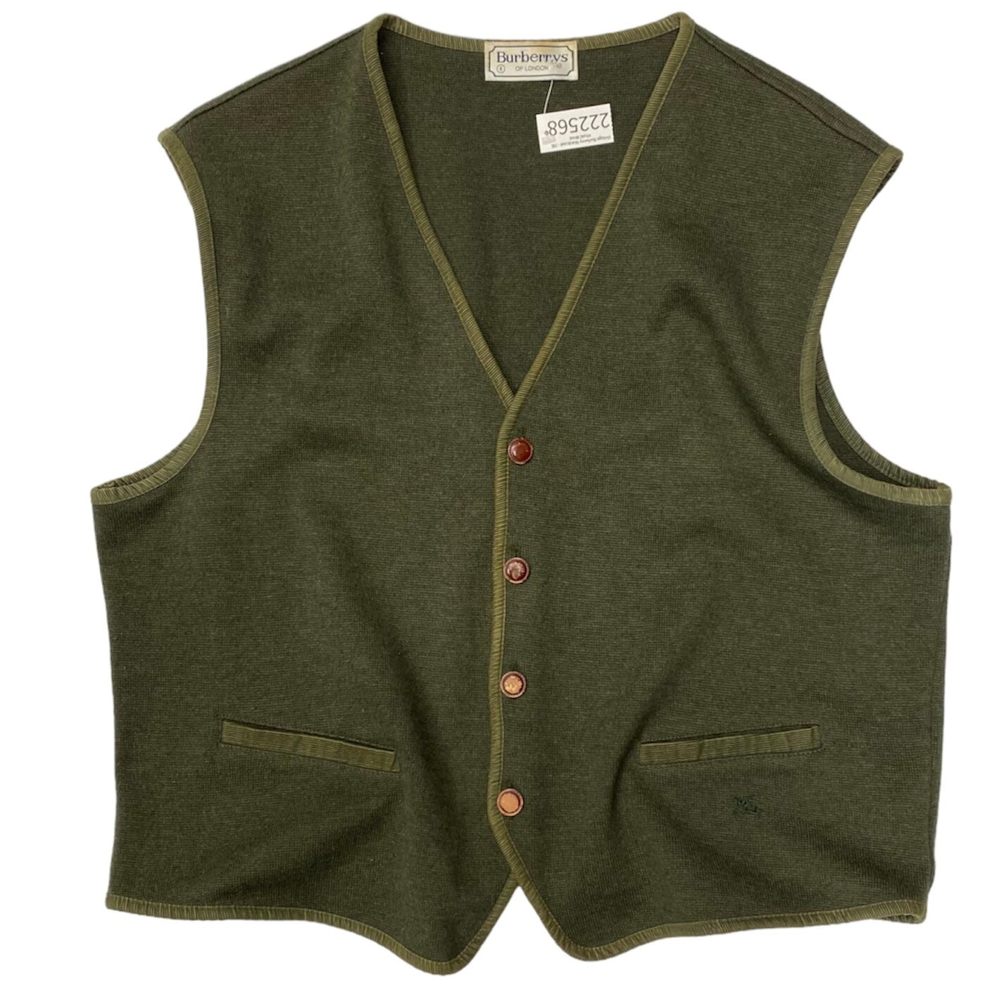 Burberrys Spainのメリノウールのベストになります。バルマカーコートではスペインの物も見られますが、ベストはあまり見かけません。色がカーキな所もミリタリーらしくて良いですね。
